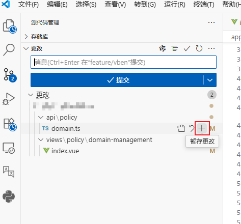 这里有需要一个概念叫 暂存更改(Stage Changes)。要区别于 搁置更改(Stash Changes)。暂存更改并不是说暂时搁置不提交的部分,相反,暂存更改是你想临时提交的内容。