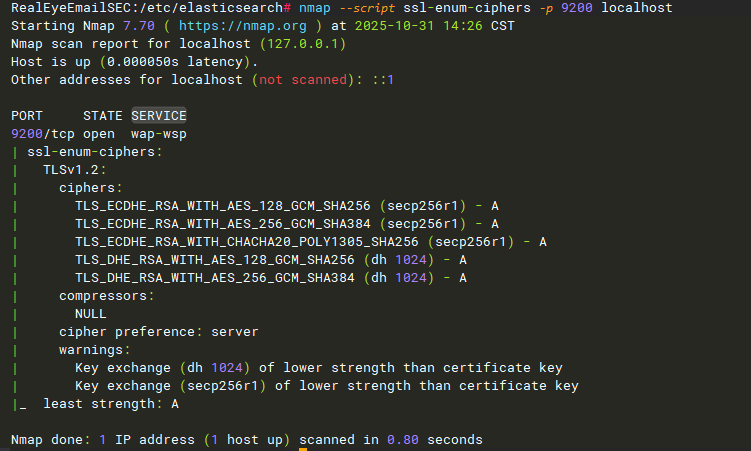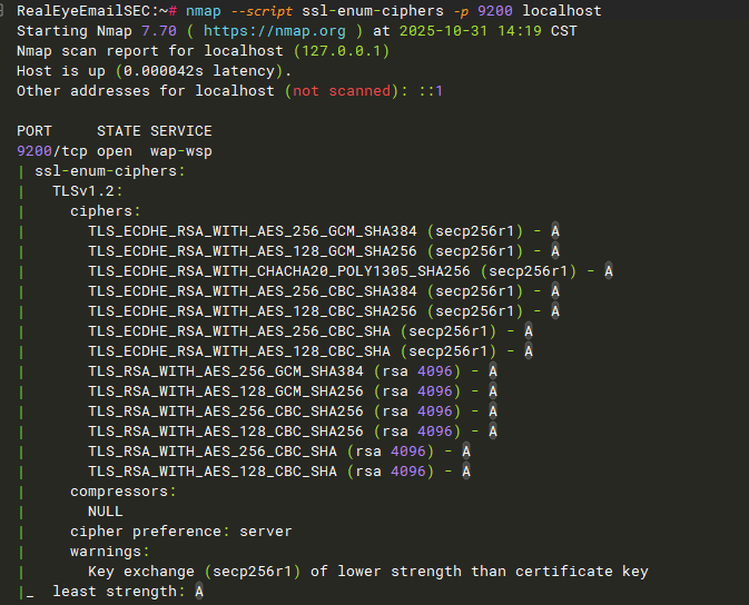nmap --script ssl-enum-ciphers -p 9200 localhost